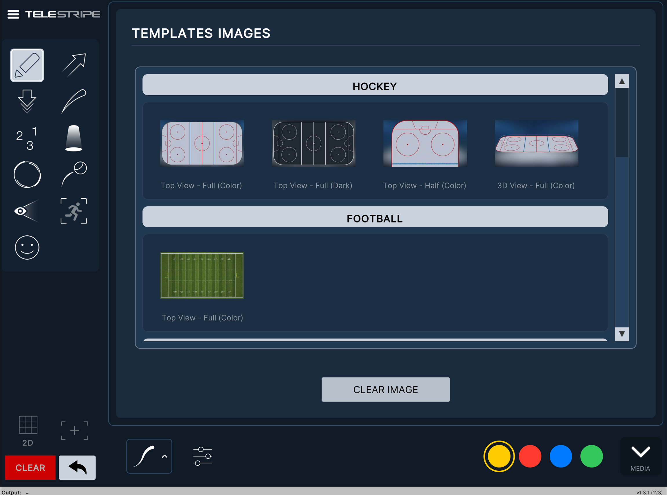 Le menu Média vous permet de choisir des images d'arrière-plan pour commencer à utiliser Telestripe. Il vous suffit d'appuyer sur pour définir une image modèle comme fond d'écran.