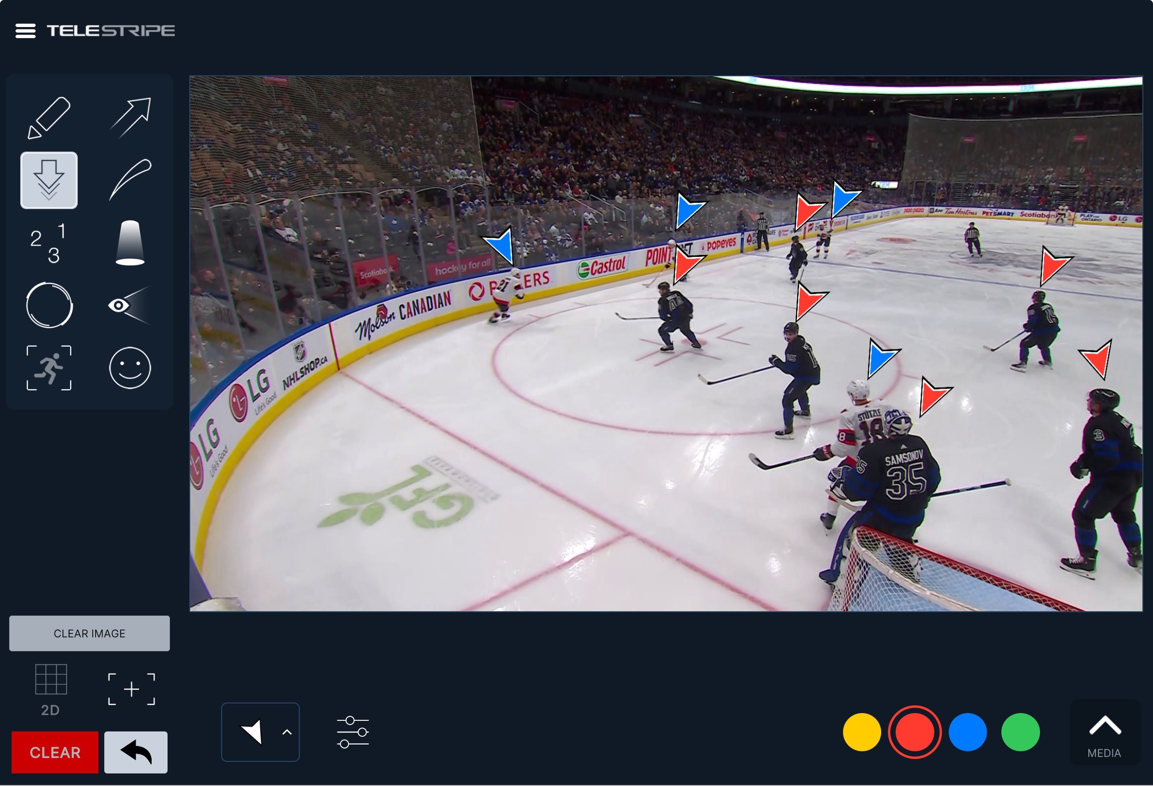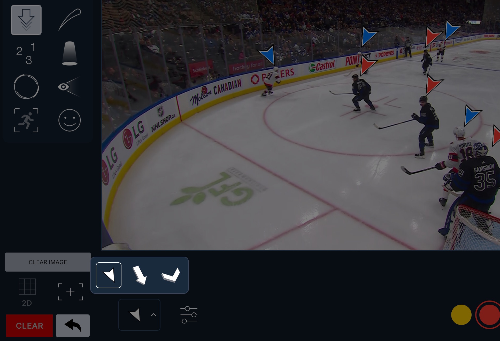 Les styles de pointeurs peuvent être sélectionnés dans le menu contextuel des options de l'outil.