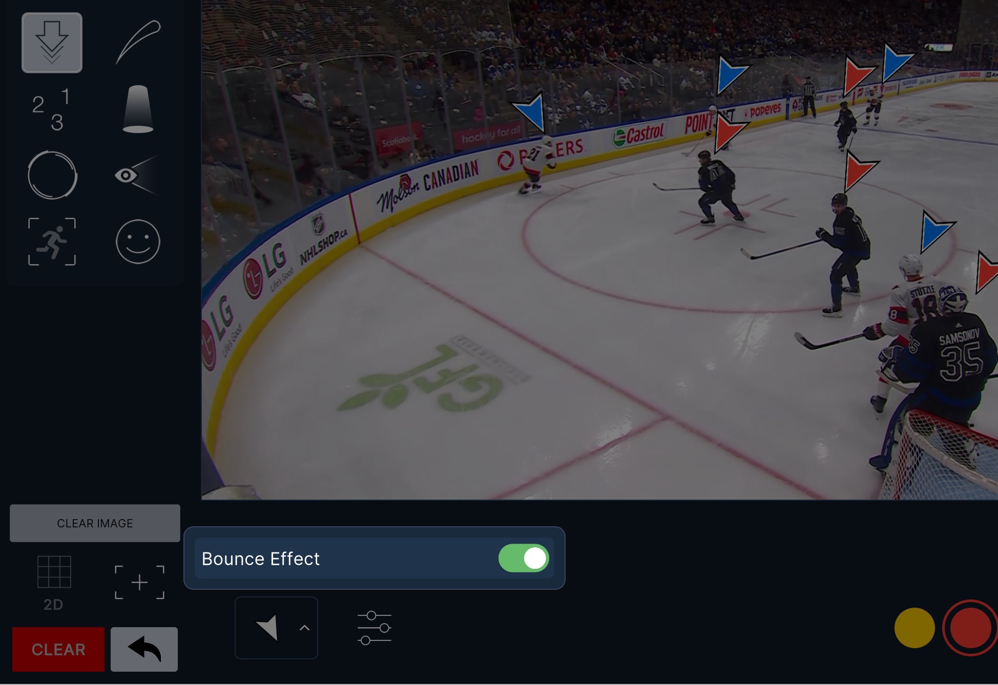 L'animation des pointeurs peut être modifiée à l'aide de la case à cocher Effet de rebond dans le menu contextuel, accessible en appuyant sur .