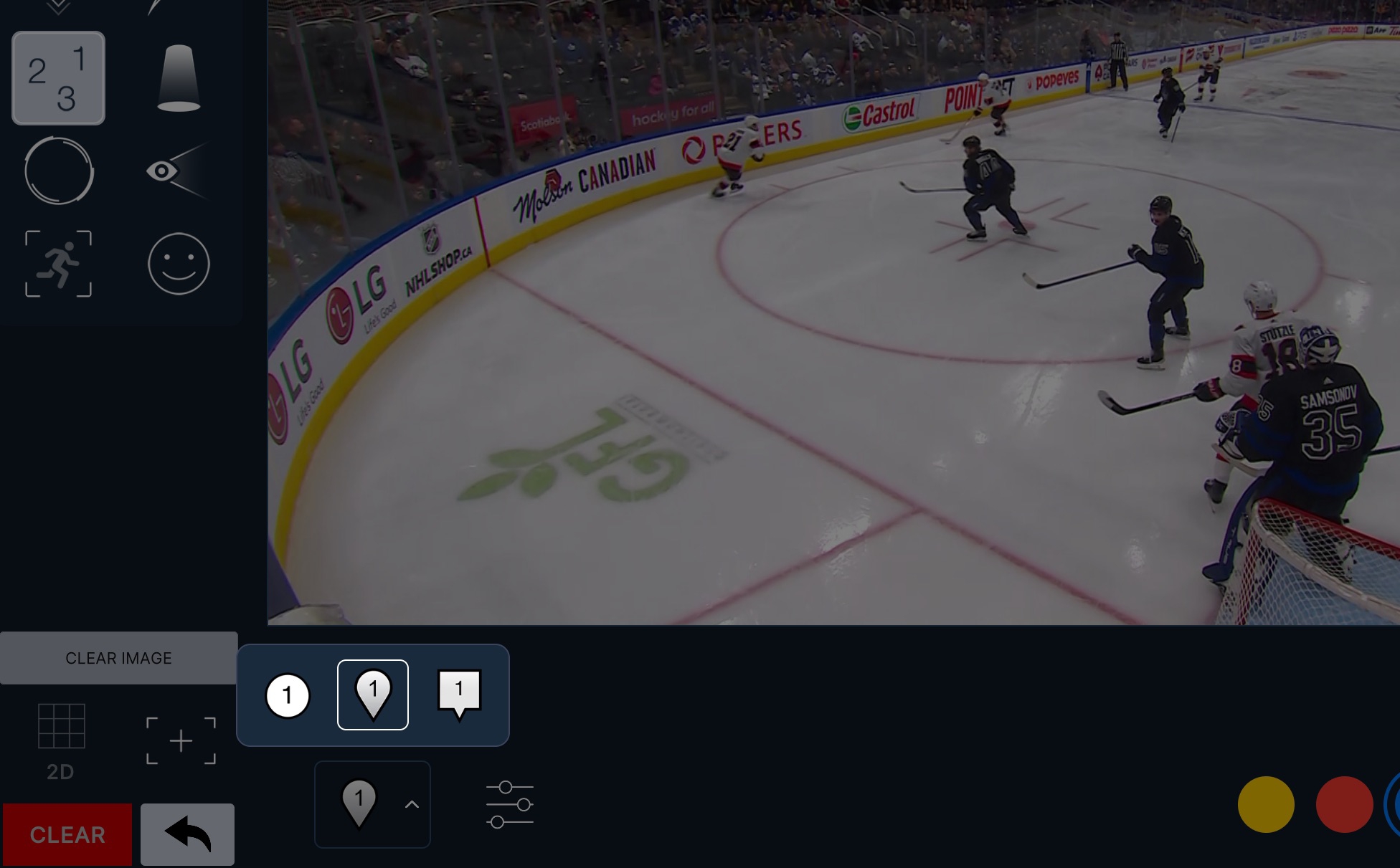 L'outil de comptage ajoute un marqueur de comptage incrémentiel à chaque touche. Cet outil est idéal pour compter les joueurs dans les sports.