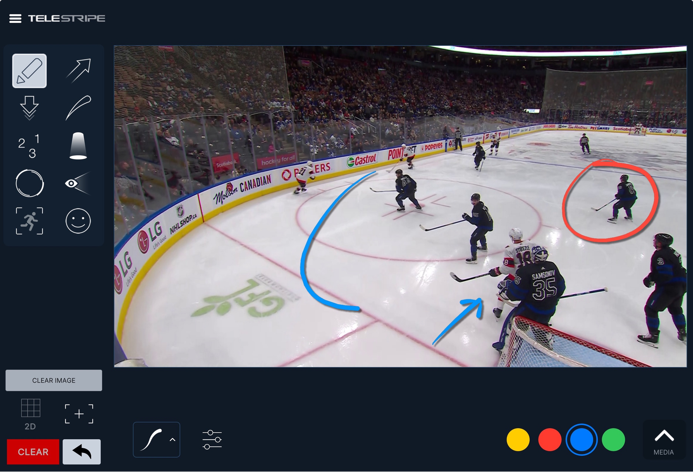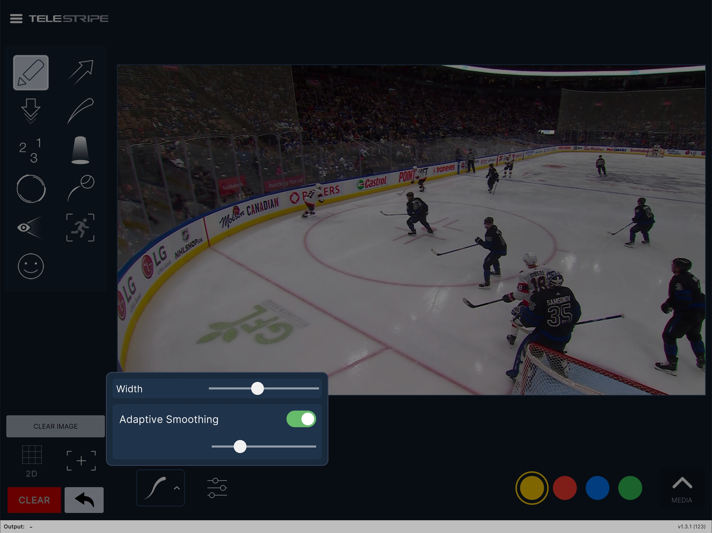 L'outil Stylo est un outil simple et polyvalent pour la Téléstration des flux et des émissions professionnelles. Telestripe prend en charge l'Apple Pencil® et le dessin tactile. Pour utiliser l'outil Stylo, appuyez sur l'icône .